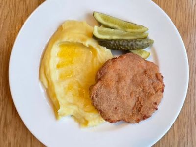 150 g smažený vepřový řízek, brambory 190. - Kč