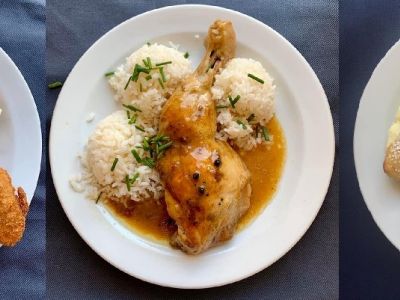 Marinovaný kuřecí steak v řeckém jogurtu a čerstvé mátě, šťouchané brambory, zelný salát s mrkví 7