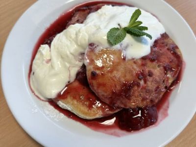 3ks Domácí lívance s tvarohem, šlehačkou a borůvkami