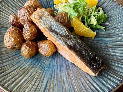 150 g treska na másle, brambor, salátek