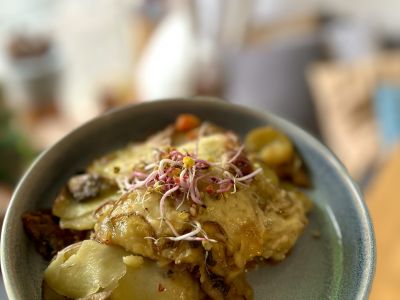 kapustový karbanátek s bramborovou kaší
