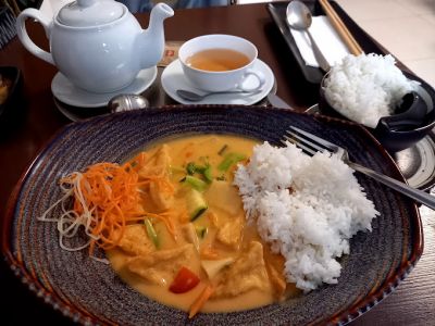 Kuřecí nudličky s nivou, rýže + POLÉVKA a:7