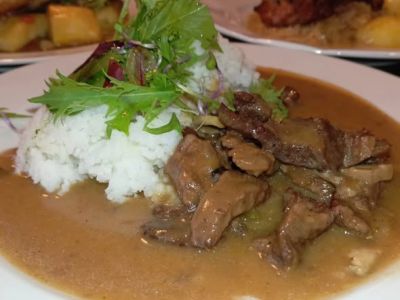 120 g Hovězí kýta na černém pivu, dušená rýže