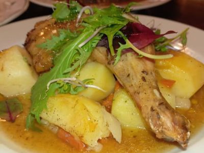 Šéfkuchař doporučuje: Pečené králičí stehno, smetanový listový špenát, naše mini bramborové lokše 13679