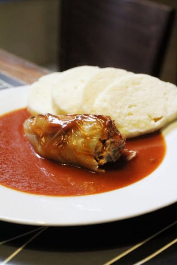 150g Křenová omáčka z čerstvého křenu podávaná s moravským uzeným a houskovým knedlíkem