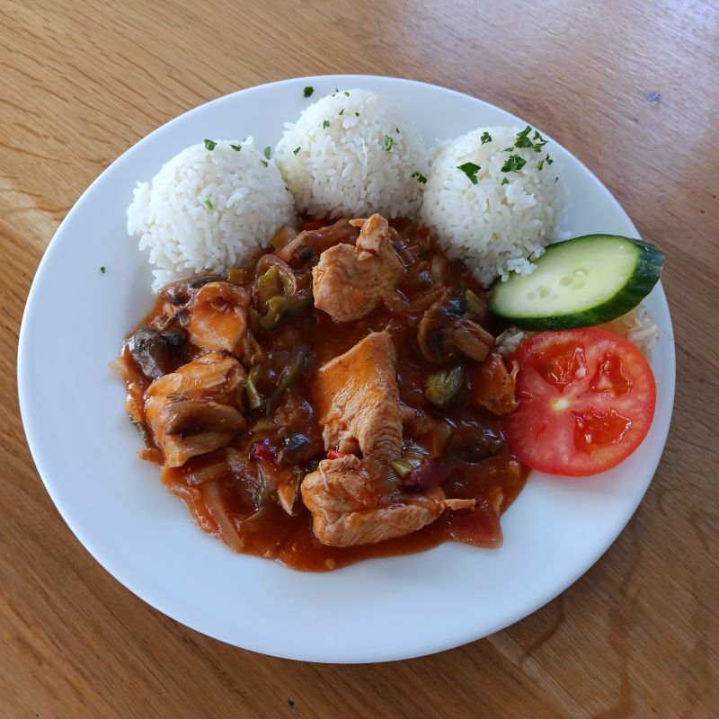 Guláš z hlívy ústřičné, pečená paprika, jasmínová rýže