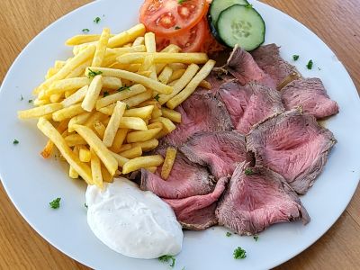 Smažený sýr, hranolky, domácí tatarka (1,3,7)
