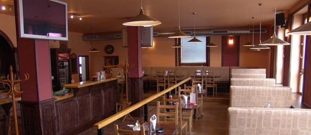 1. 150g Steak z vepřové kotlety s pepřovou omáčkou, smažené hranolky, cibulové kroužky…149 Kč