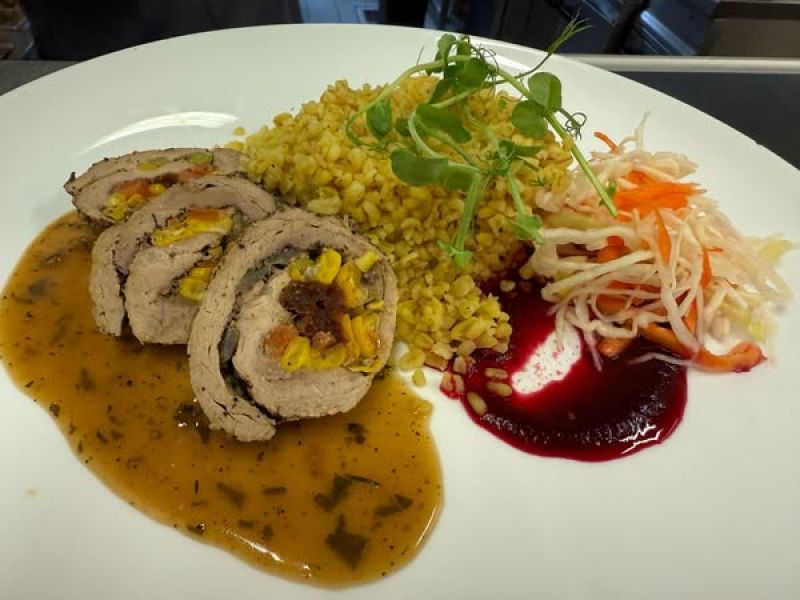 6. 120g Krůtí medailonky s citronovým veloute a pečeným fenyklem, bramborový gratin169 Kč