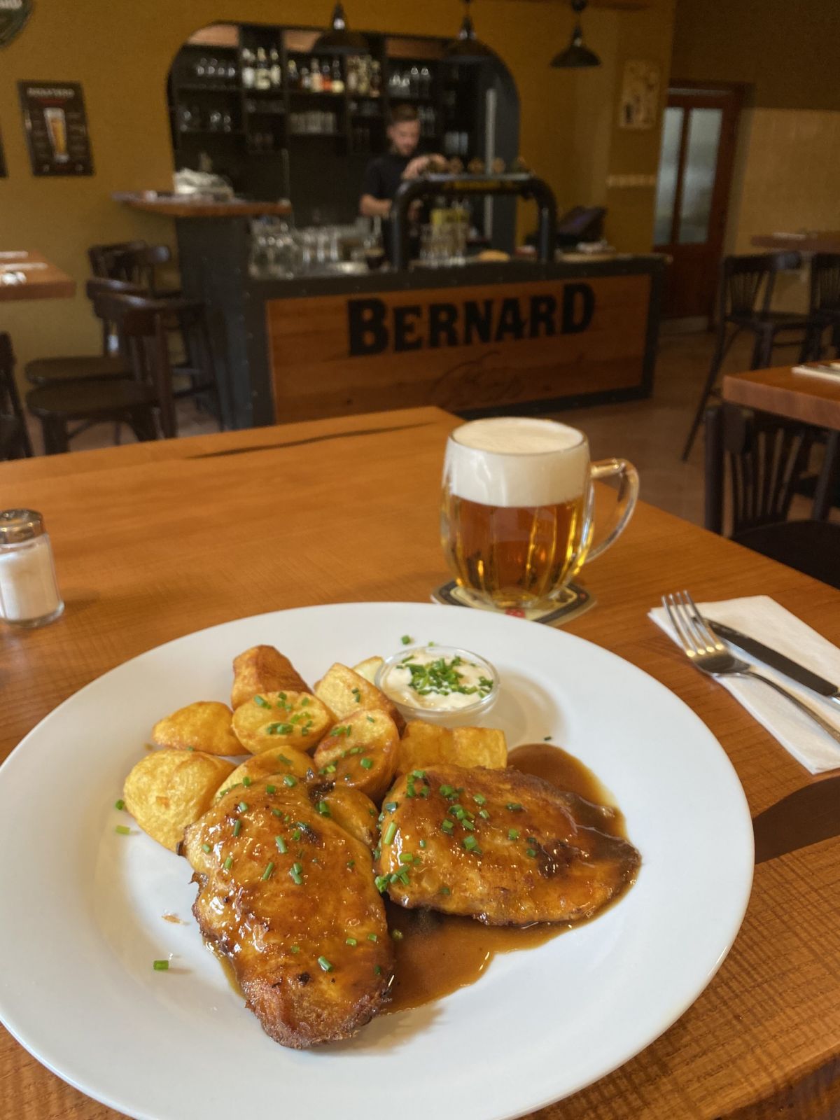 1. Menu: Čočková polévka s uzeným masem, 150g Kuřecí roláda plněná špenátem, bramborová kaše, salátek, malinovka 0, 3l nebo Bernard 10 0, 3l199 Kč