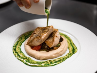 1. Vepřový T-Bone, fazolky, grenaille, demi glace349 Kč