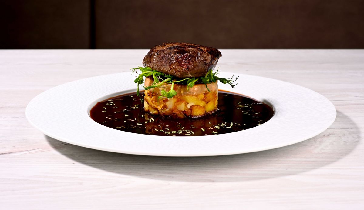 - Vepřová panenka, šípková omáčka, makový škubánek, sádlo440 Kč
