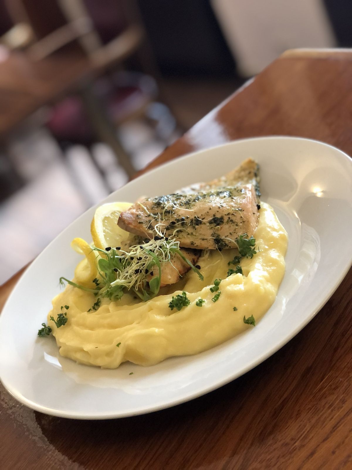 - Kuřecí prsíčko s pečenou červenou řepou na másle, bramborové pyré250 Kč