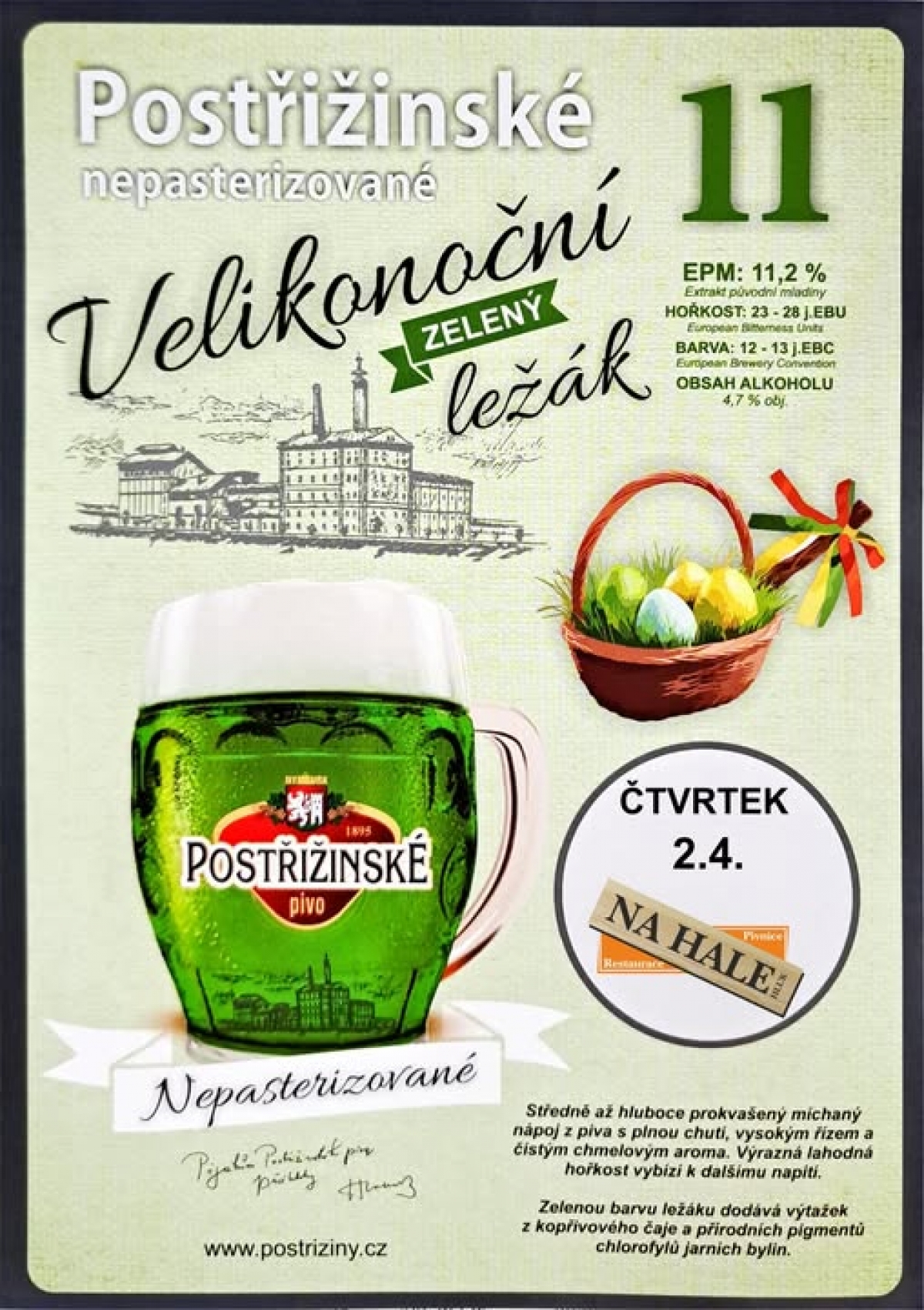 Na Zelený čtvrtek 2.4. se nezapomeň stavit na zelené pivo k nám do Restaurace NA HALE, Hluk 🍺🟢