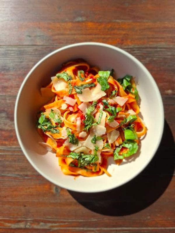 6. čerstvé těstoviny pomodoro I rajčata I česnek I cibule I bazalka I sýr Grana Padano (147 Kč