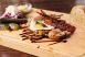 - 250g Fajitas z hovězího flanku, opečených paprik a cibule, podávané na rozpálené pánvi se salsami rocho, zakysanou smetanou a guacamole, doplněné pšeničnými tortillami499 Kč