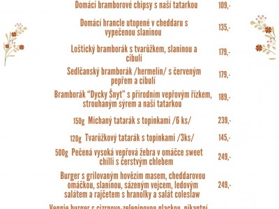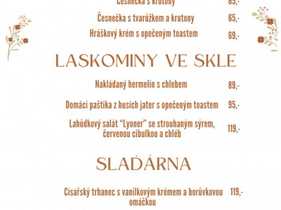 Nabídka v restauraci se může lišit. Menicka.cz negarantují dostupnost jídel či cen zde uvedených. Děkujeme za pochopení.
