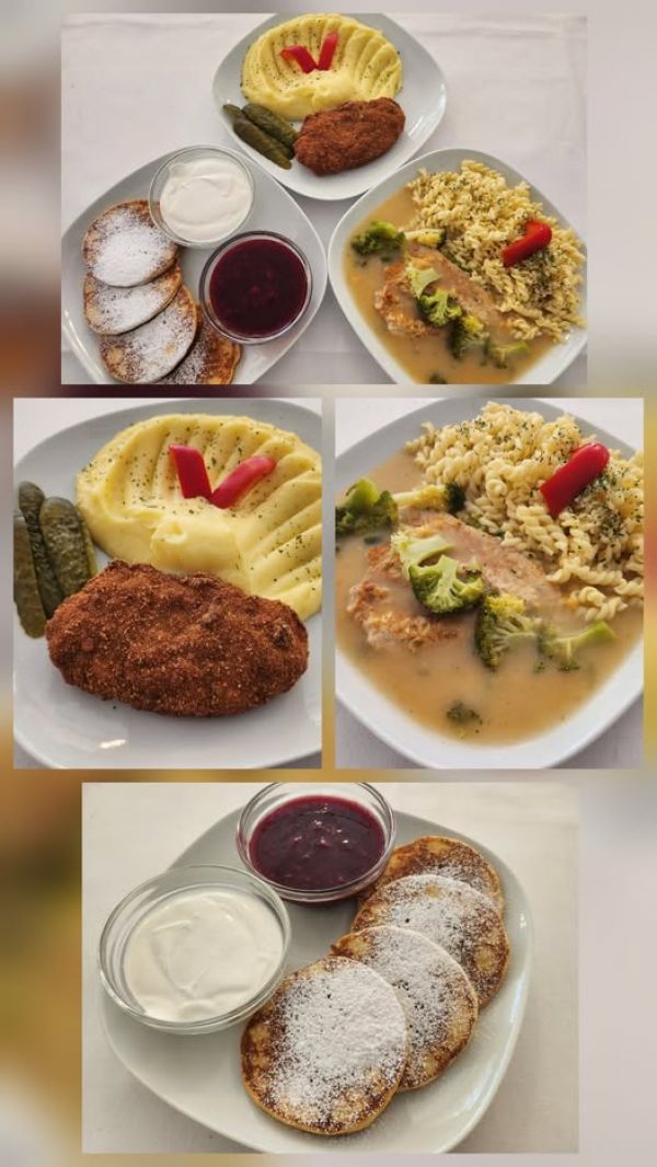 3. Zeleninové placičky, vařené brambory, tatarka / 1, 3, 7155 Kč