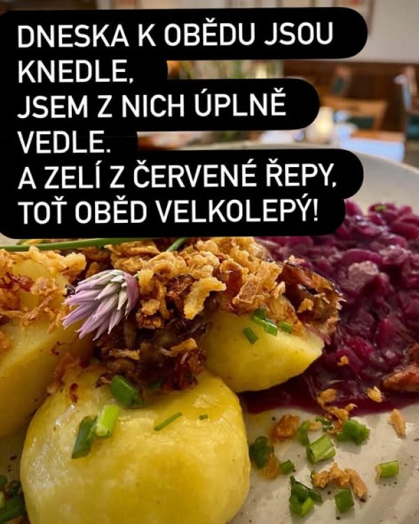 1. Plněný bramborový knedlík uzeným masem na zelí z červené řepy, sypané cibulkou179 Kč