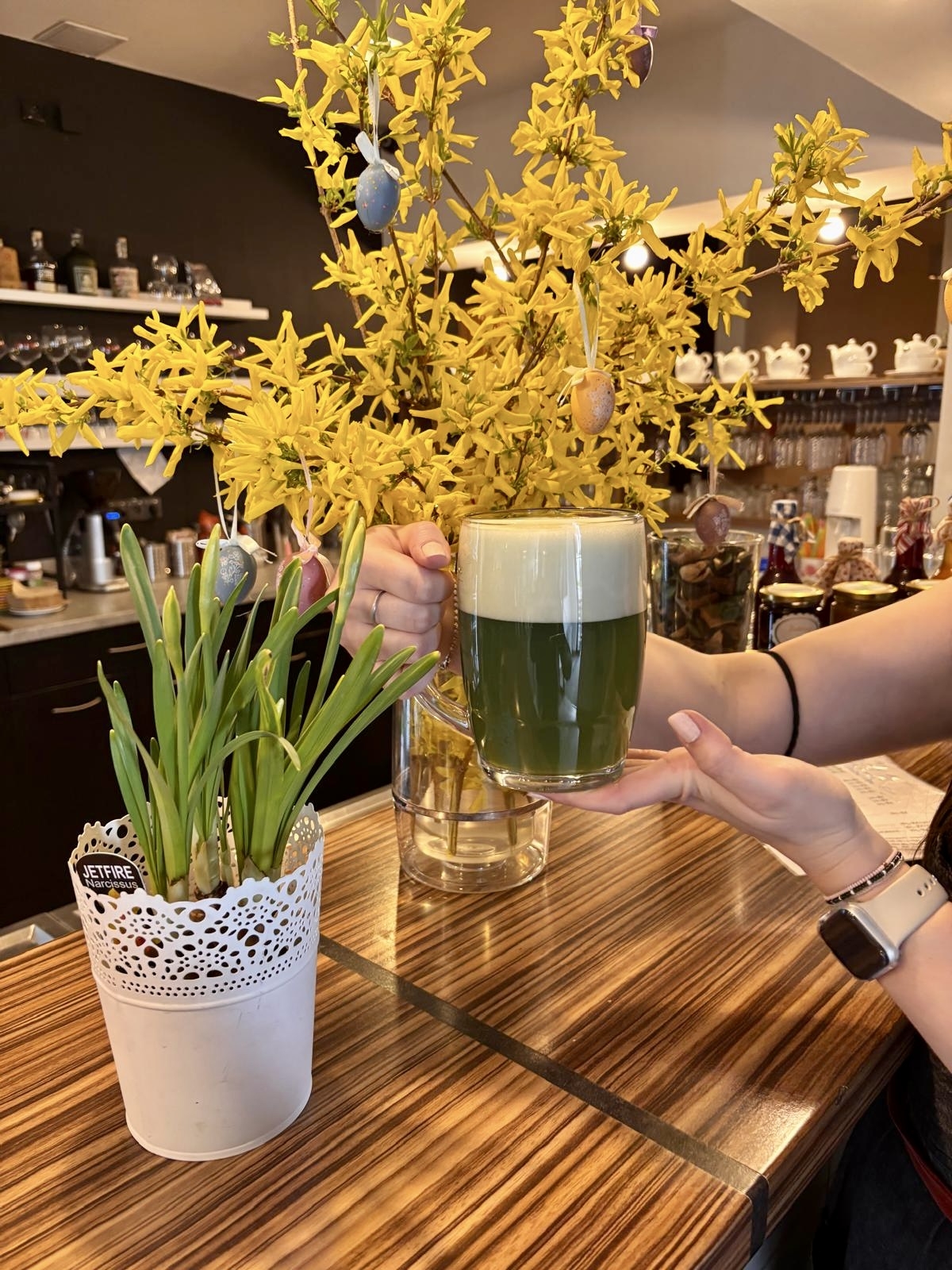 Na čepu jarní zelený ležák Litovel a pro nepivaře plnou vitrínu sladkostí :-)