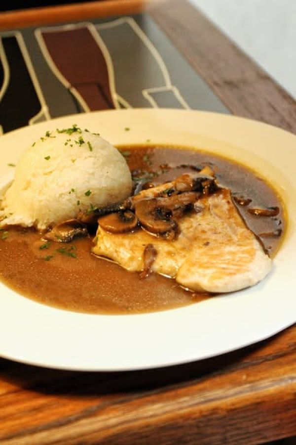 3. Smažený kuřecí řízek v pivním těstíčku, bramborová kaše, rajčatový salát169 Kč