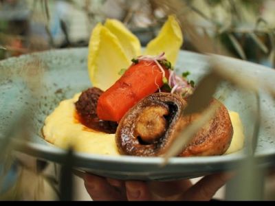 Kozí mousse, řepa, nakládaná mrkev, chlebový chips 225, -