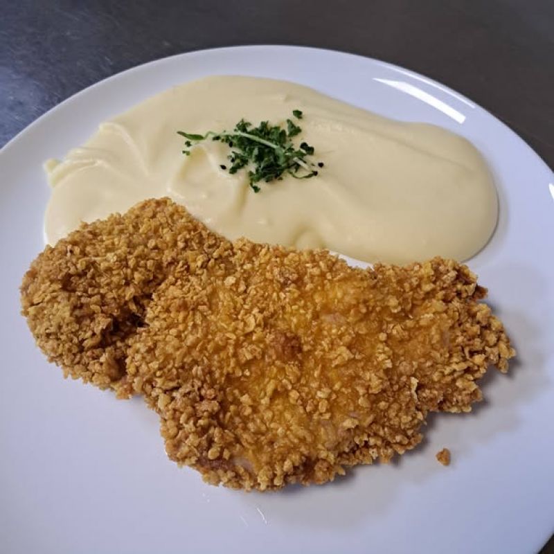 5. 120g Zlaté kuřecí medailonky, šťouchané brambory s jarní cibulkou164 Kč