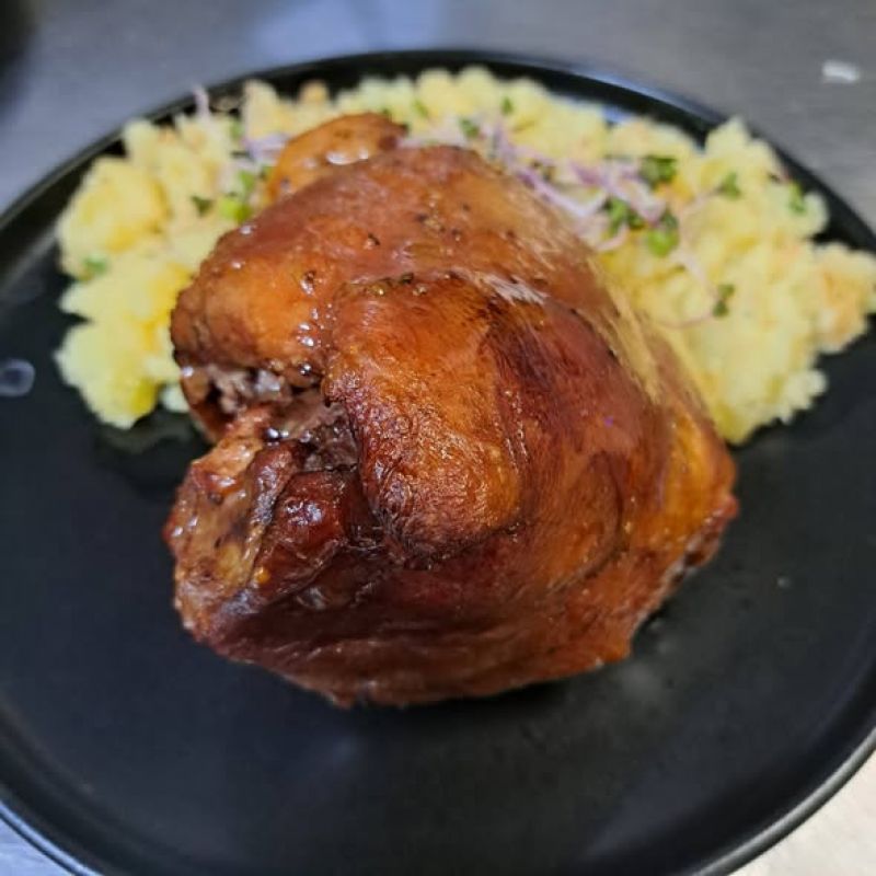 9. 0, 8kg Pečené kolínko s kostí posazeno na šťouchaných bramborech249 Kč