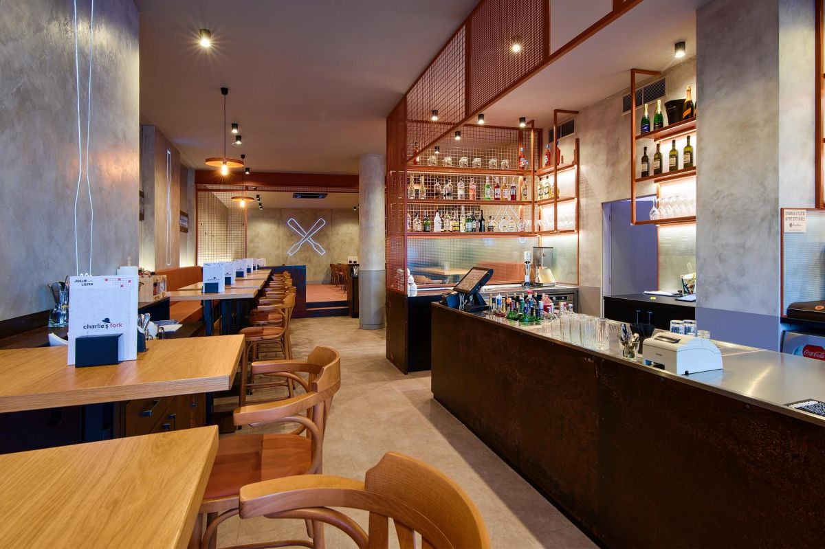 - Charlie's žebra –pomalu pečená vepřová žebírka v naší marinádě, nakládaná zelenina, opečený chléb s česnekovým máslem, hořčice, křen349 Kč