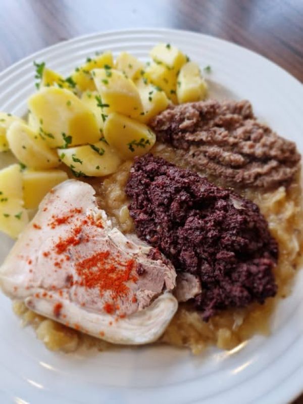 3. Vepřová krkovice na pivu, bramborové dukátky162 Kč