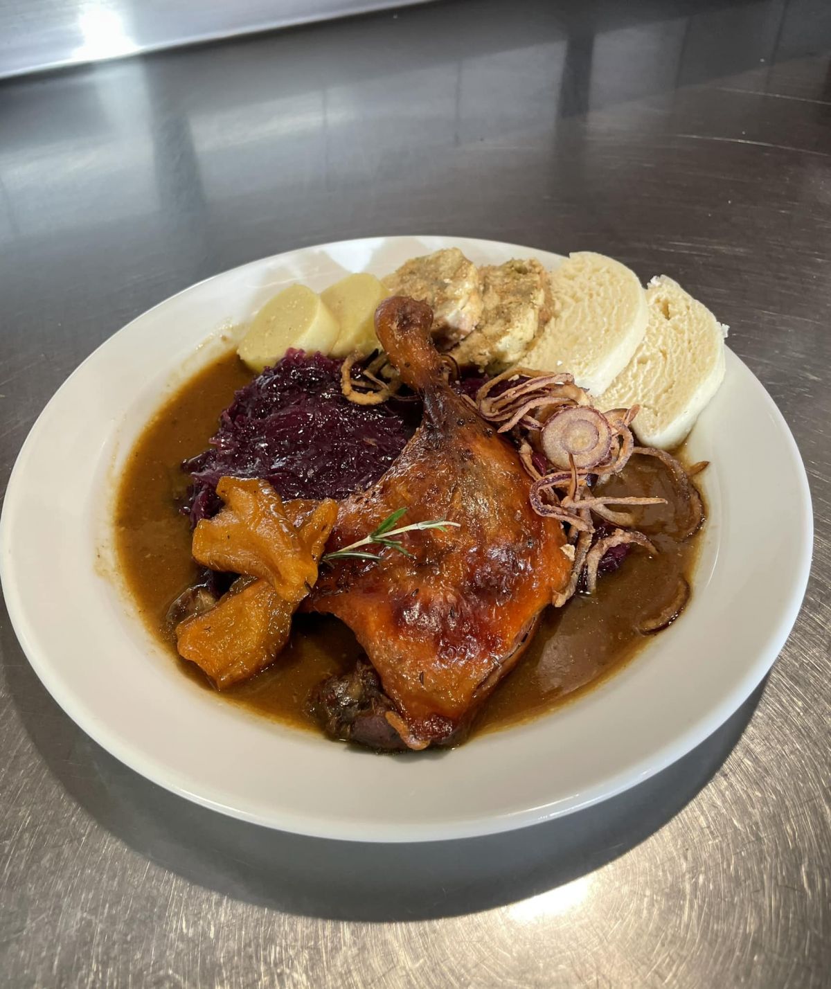 1. 150g Smažený kuřecí nebo vepřový řízek, vařený brambor, okurka165 Kč