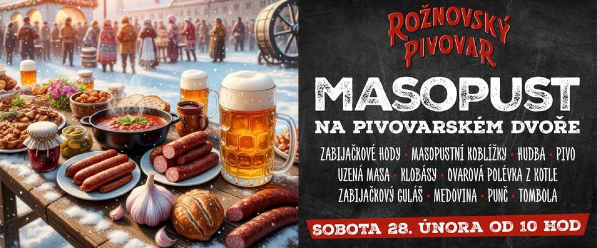 🐷 9 stánků, pivo, punč, alkohol, čerstvé koblížky, zabíjačky z kotle, ovarová polévka, guláš, uzené, jitrnice, jelito, výpečky, kolena