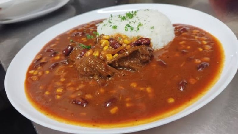 3. 150g KUŘECÍ "CHILLI CON CARNE" rýže nebo hranolky 180180 Kč