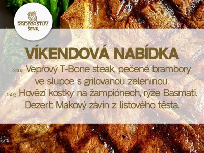 1. Hovězí pečeně, rajská omáčka, houskové knedlíky.179 Kč