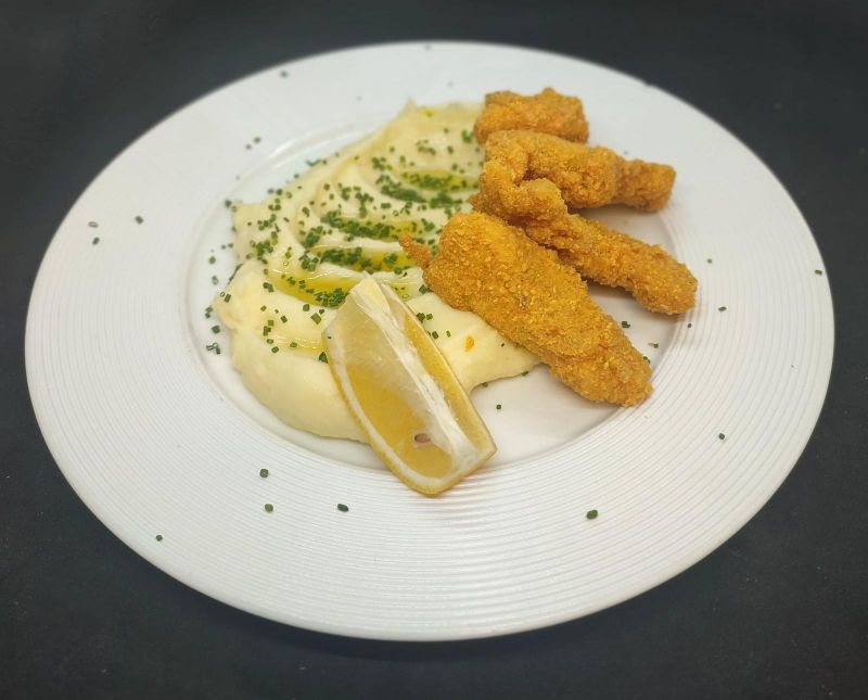 5. V bylinkové strouhance smažené filátko tresky tmavé se šlehanou máslovou bramborovou kaší228 Kč