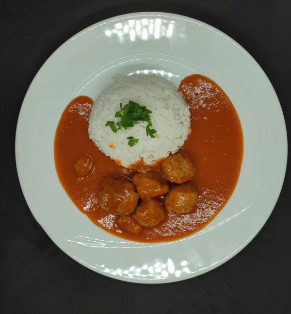 3. Kuřecí nudličky v domácí curry omáčce s ananasem, s pečenou jasmínovou rýží187 Kč