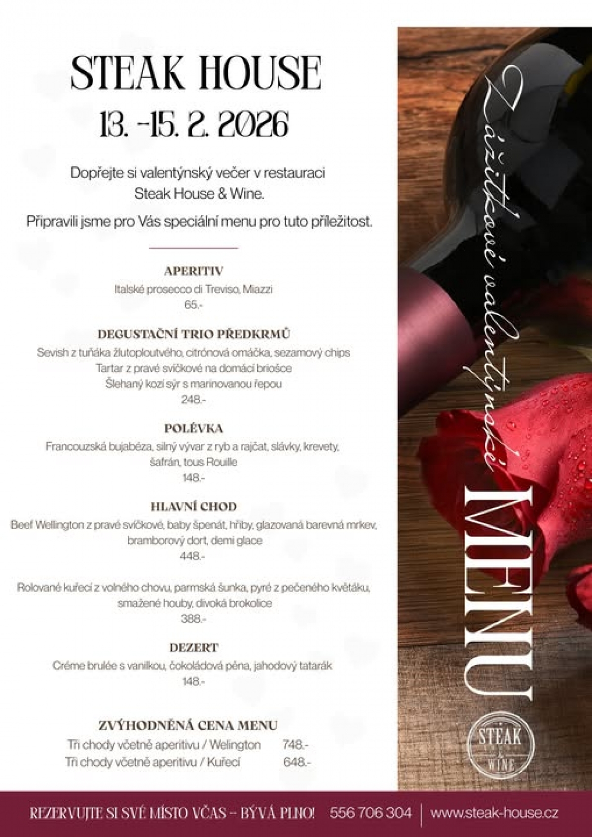13.–15. 2. 2026 pro Vás ve Steak House & Wine připravujeme