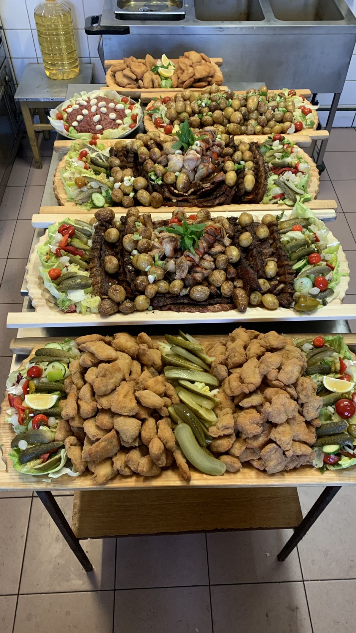 4. 150g šašlíky z mletého masa, pečené brambory ve slupce, ďábelka 13712140 Kč