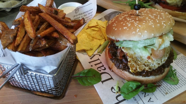 4. 200g Mix grill /vykoštěný kuřecí BBQ steak z grilu, hovězí flank steak /filírovaný/ podávaný s belgickými hranolky se slupkou a teplou pepřovou omáčkou185 Kč