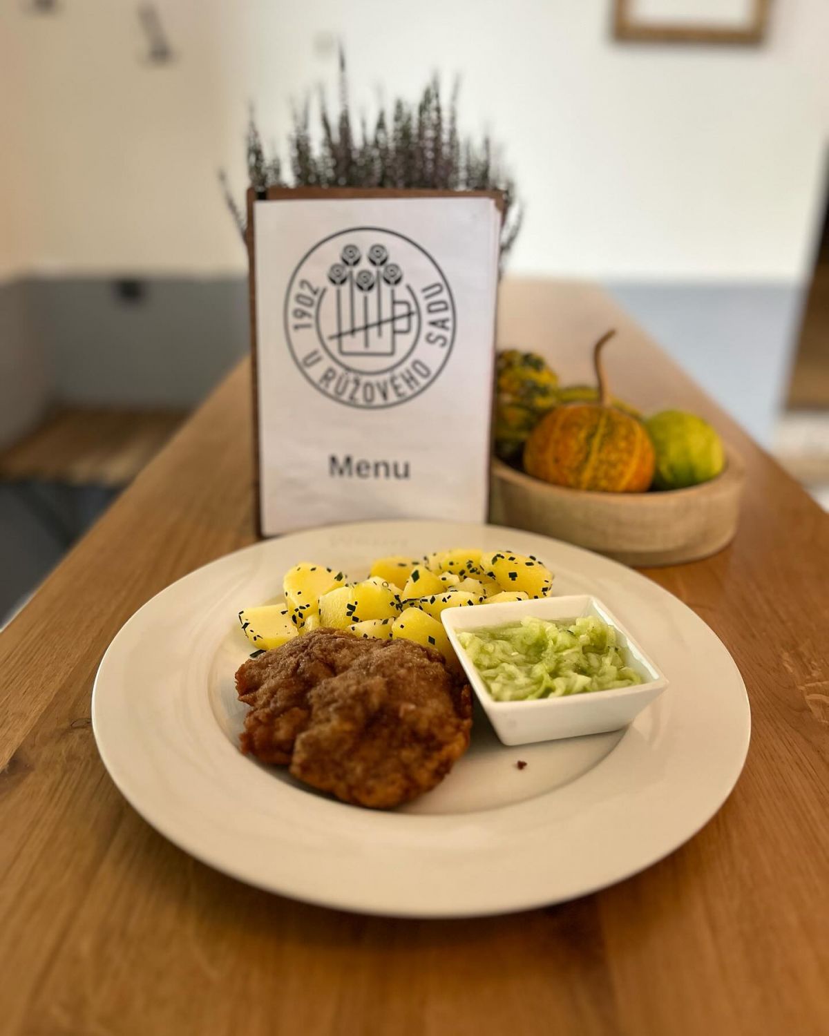 1. 150g Trhaná, uzená krkovice na bramboráku, hořčicová om. s pečeným česnekem, pikantní zelný salátek199 Kč