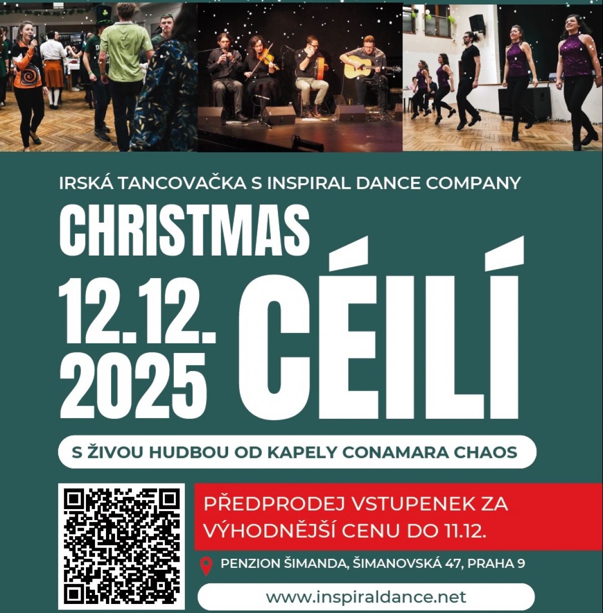 Zveme vás na vánočně laděnou irskou tancovačku – Christmas Céilí – kde nebude chybět živá hudba, tanec, přátelská atmosféra a možná i pár vánočních překvapení.