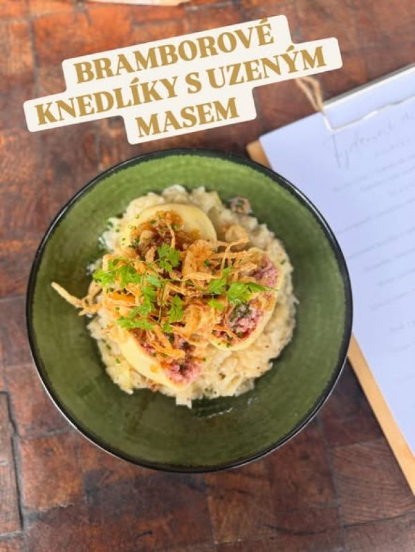 9. Grilovaná vepřová játra, šťouchaný brambor, karmelizovaná cibule, slanina, demi glace, tatarka219 Kč