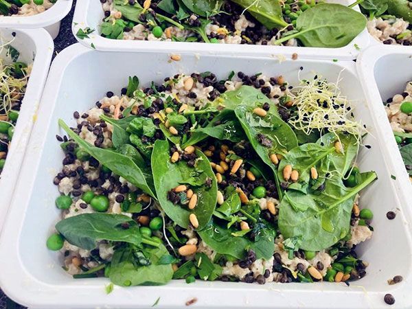 5. Salát s hermelínovými nugetkami, sušené švestky, rukola, vlašské ořechy, švestková zálivka, toast135 Kč