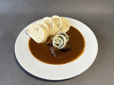 1. 350g Bramborové knedlíky plněné uzeným masem s červeným zelím a restovanou cibulkou159 Kč
