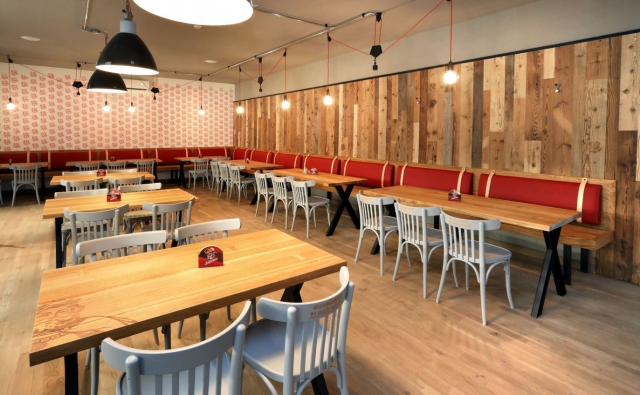 5. 4. Beef Burger - karamelizovaná cibule, čedar, anglická slanina, francouzská omáčka, rajče, ledový salát, malé hranolky, tatarská omáčka189 Kč