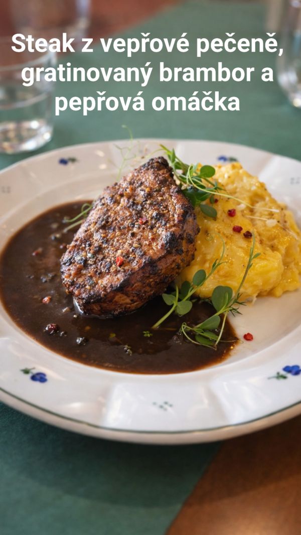 1. 200g Kuřecí prso Sous vide balené ve slanině, domácí bramborové noky a smetanová omáčka199 Kč