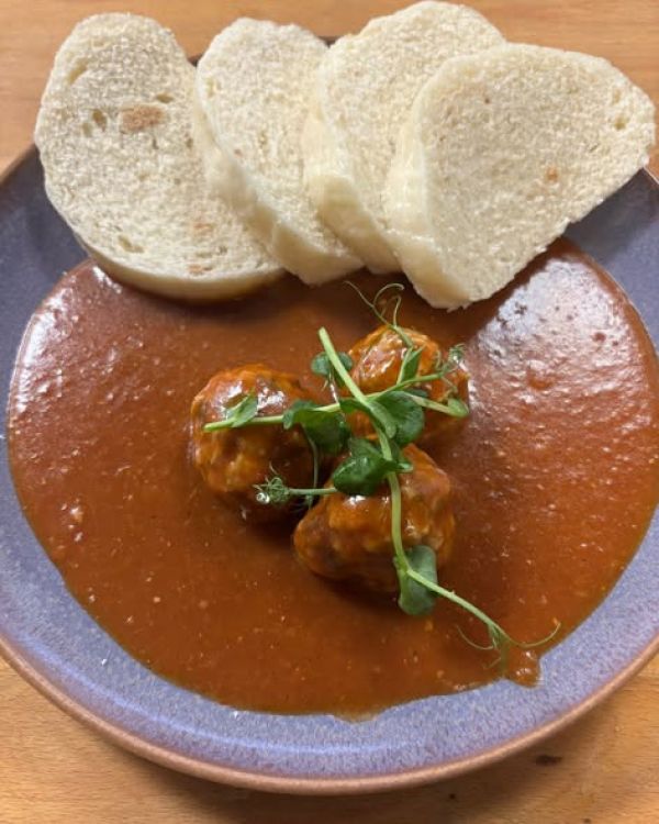 1. 150g Masové kuličky v rajské omáčce, houskový knedlik 1a, 3, 7159 Kč