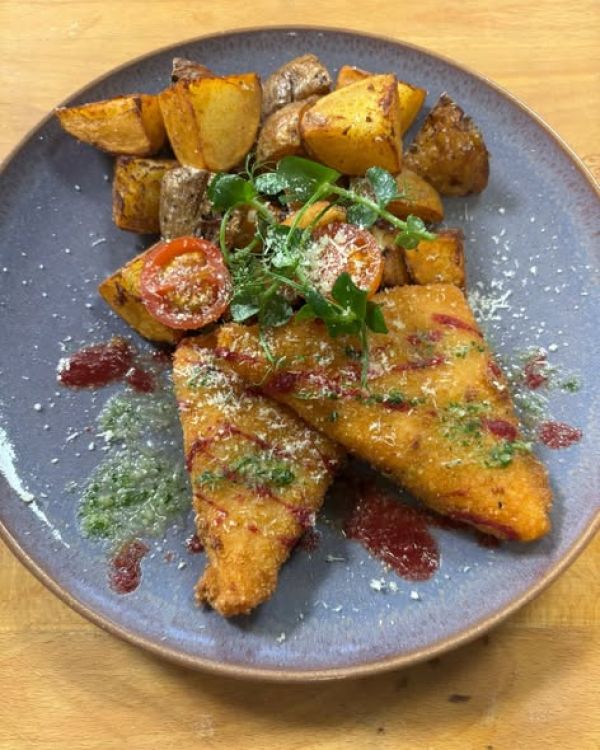 2. 150g Smažený cheddar, opékané brambory 1a, 3, 7169 Kč