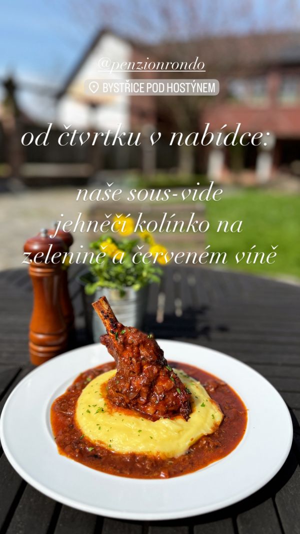 6. 150g Vepřová líčka pečená na zelenině, bramborová kaše195 Kč