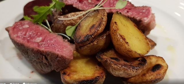 6. 450g Kachníčka pečená na černém píve, medu a mandlích, červené zelí, bramborový knedlík230 Kč